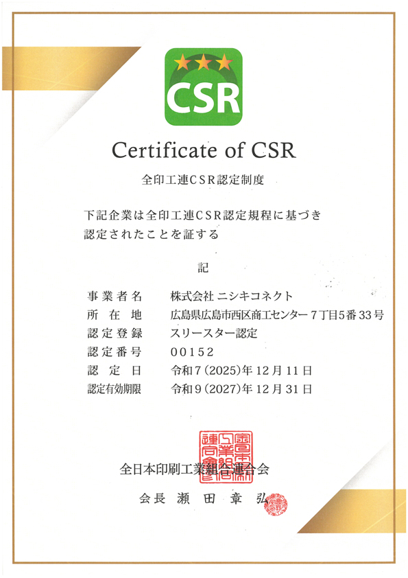 | 令和3年 | 2021年 | 12月 | 「CSRワンスター」認定企業に登録 |