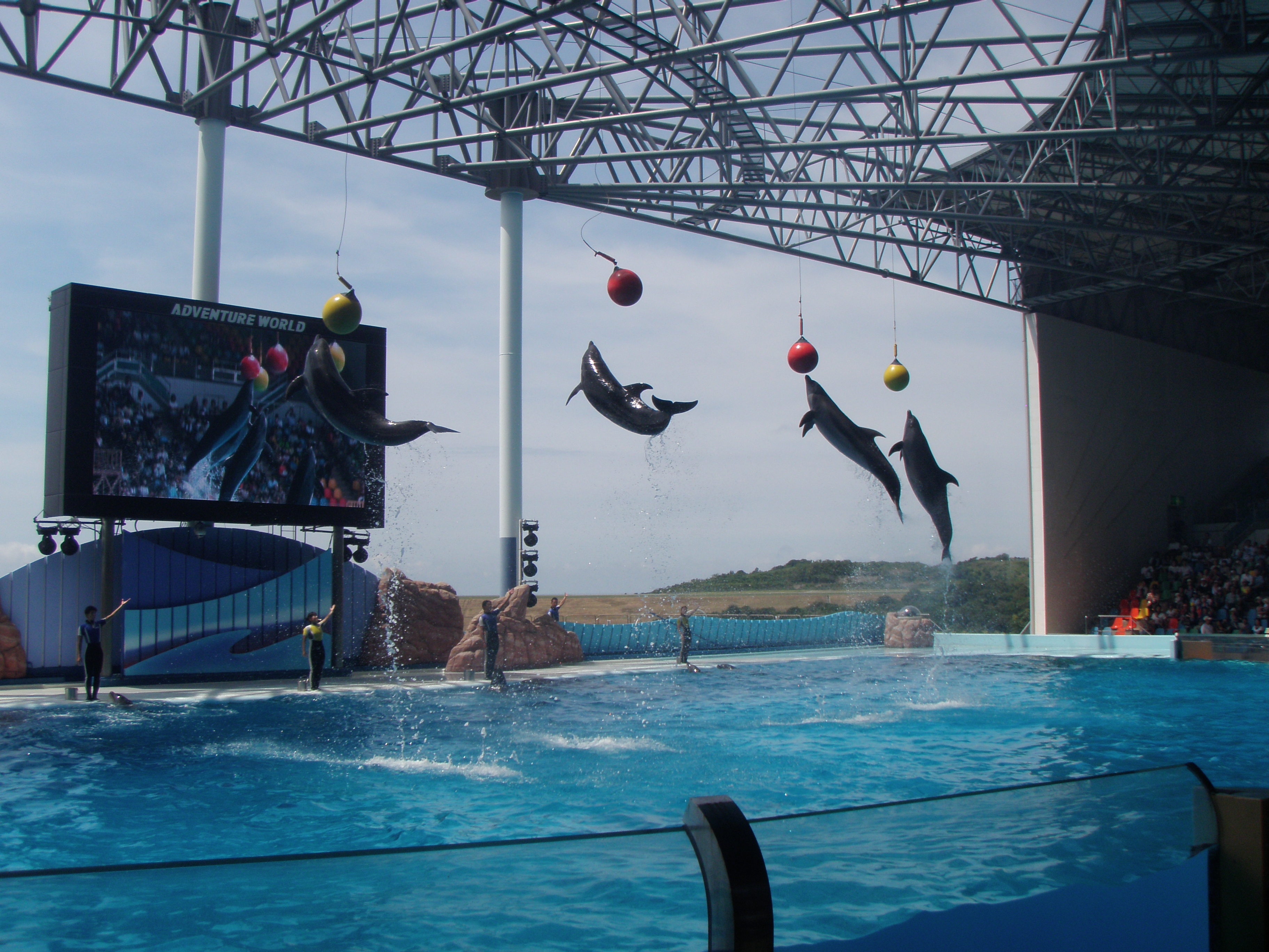 それらがなくても十分楽しめるのがアドベンチャーワールド!まずはマリンライブ(イルカショー)のご紹介。