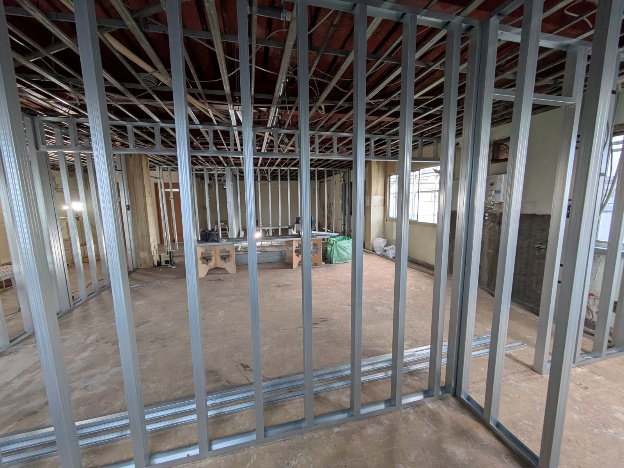 そして、外壁工事といよいよ内装工事が始まったようです。外壁のほうは足場が組まれていきます。