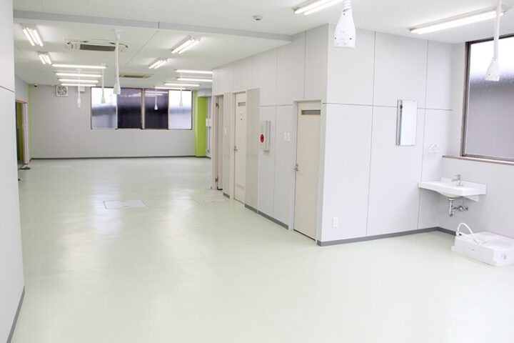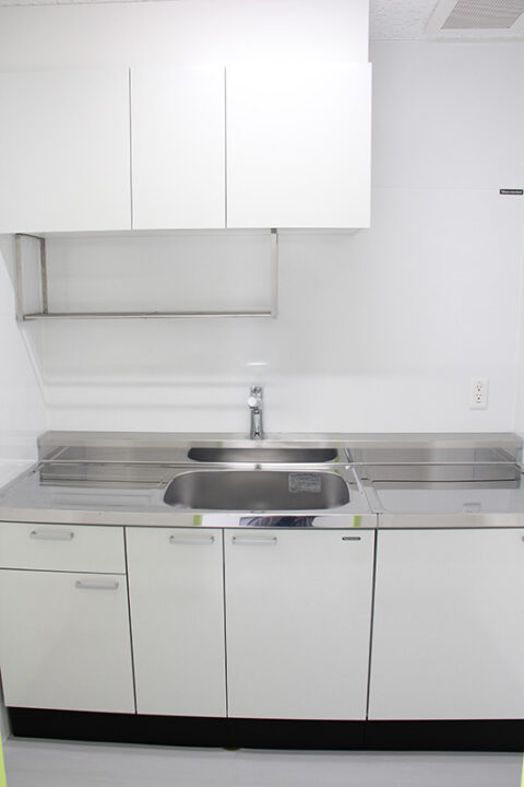 すごくきれいで衛生的!以前の作業場とは雲泥の差です。1階の約半分ほどは作業場になっていて、めばえの仕事である軽作業がやりやすい環境になっています。また、相談室や面談室など事業所に必要な部屋も作りました。